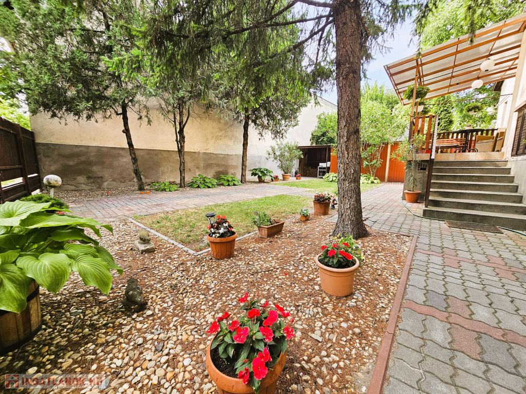A rendezett virágos, parkosított udvar és a fedett terasz kellemes kikapcsolódást és szép kilátást nyújt. Az ingatlan kiváló választás nagyobb családoknak, akik tágas, kényelmes otthont keresnek a belvárosvárosban.