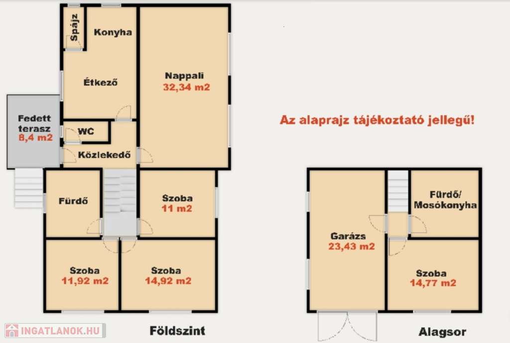 - Parkolás: udvarban és garázsban 23 m2