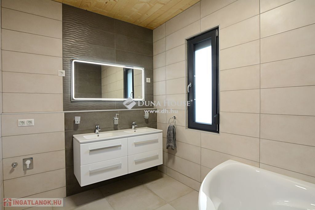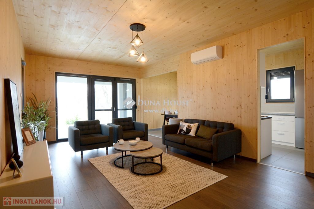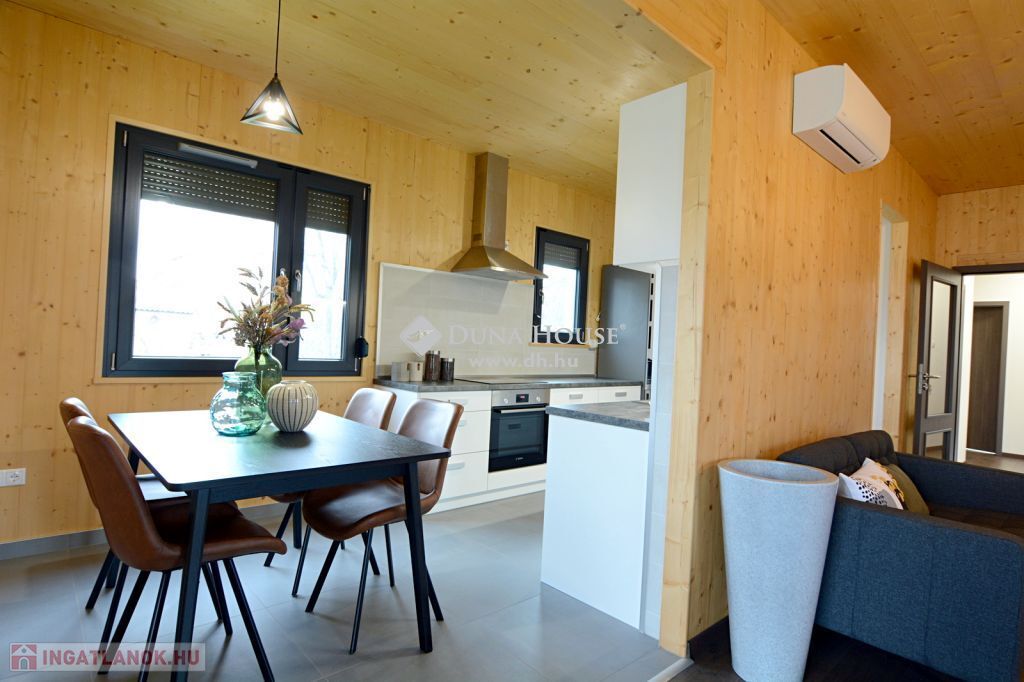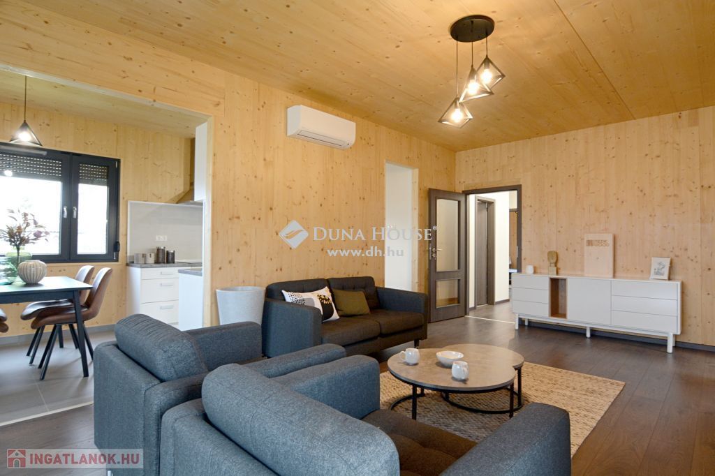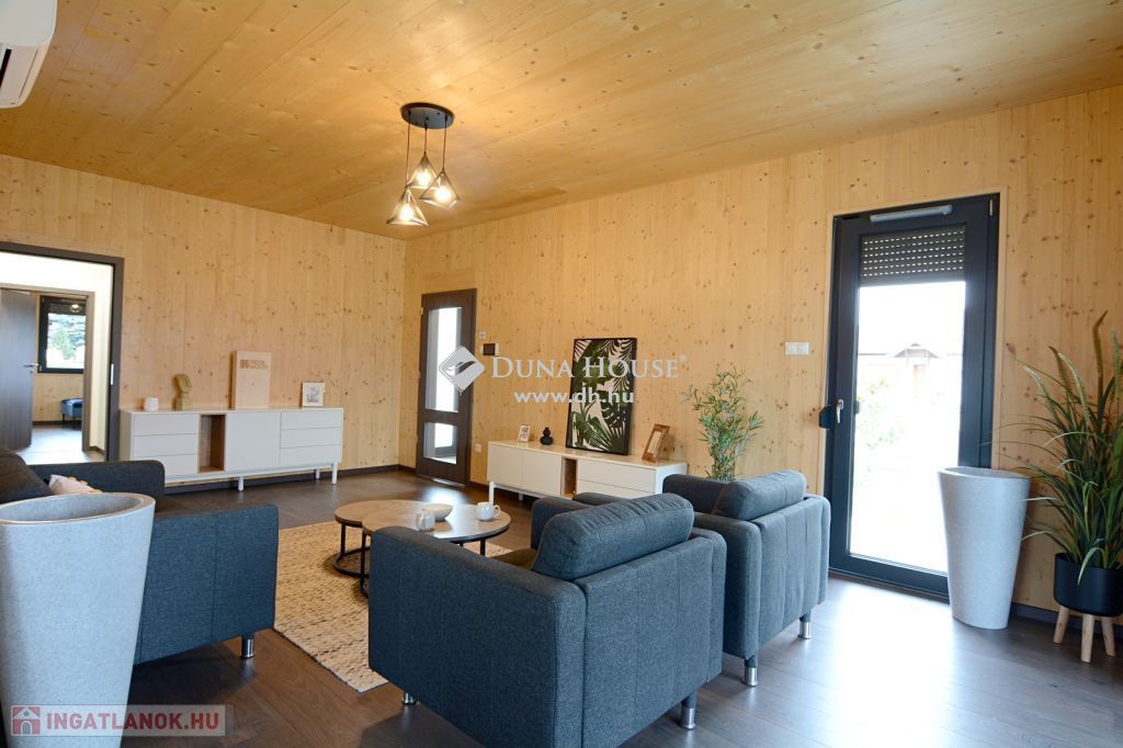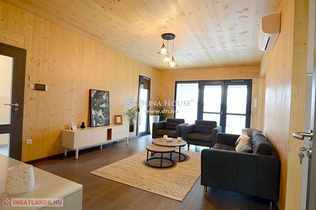 A Sóstó lakóparkban eladó ez az ÚJ építésű, 93 nm-es, CLT technológiával készült családi ház, terasszal, parkosított udvarral. Az átgondolt elrendezésű nappali + 2 szobásra tervezett ingatlan élhető terekkel rendelkezik. A tervezésnél szempont volt, hogy a közösségi tér teljesen leszeparálható legyen a szobáktól. Tájolása és a sok ablak miatt egész nap természetes fényben úszik a beltér. A házat a kellemes kisugárzása és az illata teszi otthonossá köszönhetően a látszó fa szerkezetnek.
