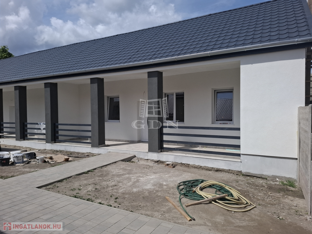 Teljes körűen felújított ikerházfél Kiskunlacháza központjában, saját udvarral, térkövezett kocsibeállóval és fedett terasszal!