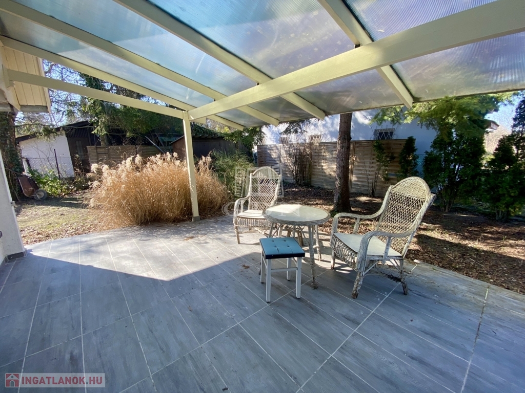 A 370 m²-es telken elhelyezkedő ingatlan alapterülete 78 m², melyhez egy 20 m²-es fedett, kertre néző terasz kapcsolódik — van hogy a reggeli kávét mókusok társaságában élvezheti az ingatlan gazdája.