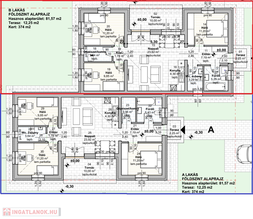 Ingatlan nettó alapterülete 81.57 nm + 12.25 nm-es fedett terasz