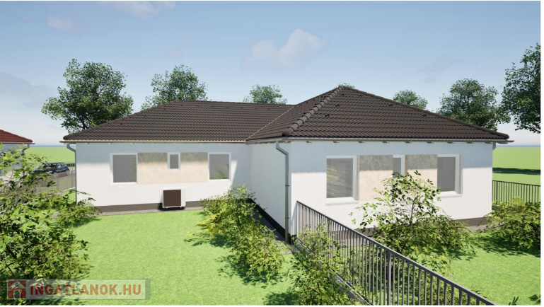 Új építésű, 82 nm-es, összkomfortos családi ház eladó Kiskunlacházán – hőszivattyús fűtéssel, 374 m²-es teleken