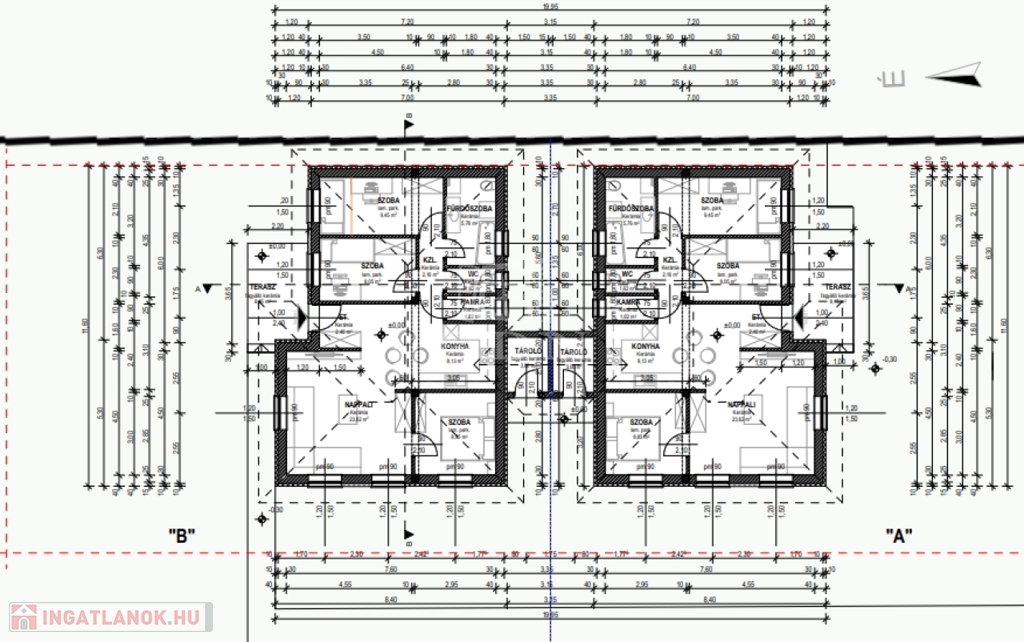 Hátsó "B" lakás 597 m2 kert, 75 m2 ára: 69.900.000 ft