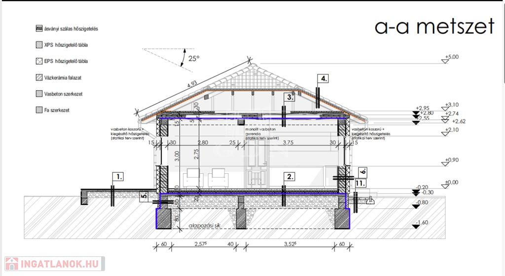 - 30 cm Porotherm téglából épült, mely 15 cm-s grafitos szigetelést kap