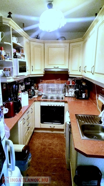 A konyhában gépesített, beépített konyhabútor található, amely a vételár részét képezi: elektromos sütő, kerámialapos főzőfelület, páraelszívó, beépített mosogatógép, beépített hűtő, mikrohullámú sütő.