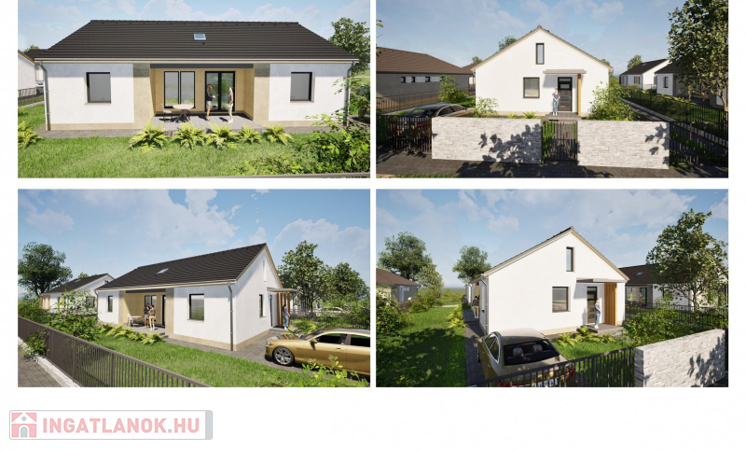 Építés éve: 2025, beton alap, 30 cm-es tégla, főfalak hőszigetelő vakolattal, Bramac Rómaicserép fedés.