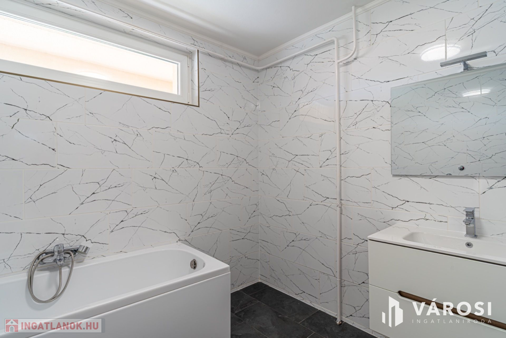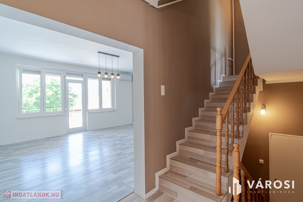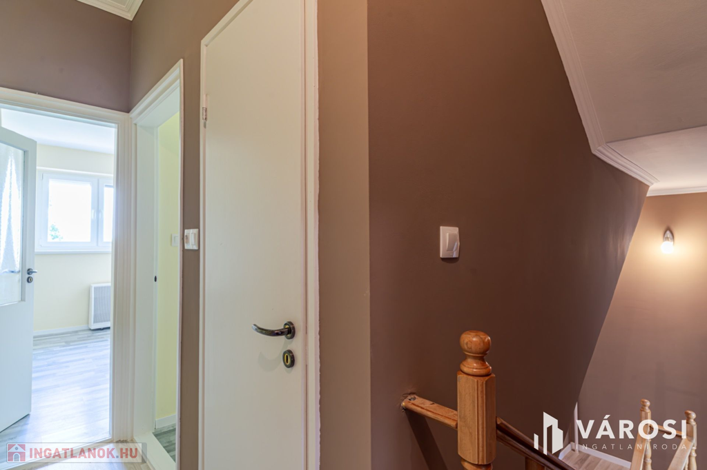 A ház 1 db nappalival, 5 db hálószobával, 3 db fürdőszobával, konyha étkezővel közlekedőkkel terasszal, és dupla garázzsal rendelkezik. Az ingatlan elhelyezkedésre (sportpálya, 2 háztömbnyire a belváros, valamint a fürdő is 8 percre), kialakítása miatt, maximálisan kiemeli ezt az ingatlant az átlagos sorházak sorából és egyedülálló választássá teszi azt. További előny, hogy az eladó 2020-ban sok elemében felújította az ingatlan, kicserélte a teljes tetőt (új gerendák, új fóliázást, és új cserepek, és új esővíz elvezetés), felújította a fürdőt, kicserélte az összes nyílászárót - szúnyoghálóval és rolóval is ellátta - , a szobákban és teraszon is új burkolatokat rakott le, illetve a ház homlokzatát új 15 cm - es szigeteléssel látta le, valamint a konyha kapott egy új konyhabútor is. Legutolsó esztétikai felújítása az ingatlannak 2024-ben volt.
