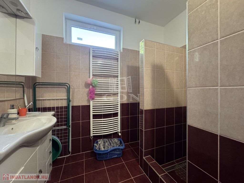 A tetőtér 26m2-es, szoba, zuhanyzó és egy tágas előtér található itt, melyből leválasztható még egy helyiség, ami kialakítható akár hálószobának is.