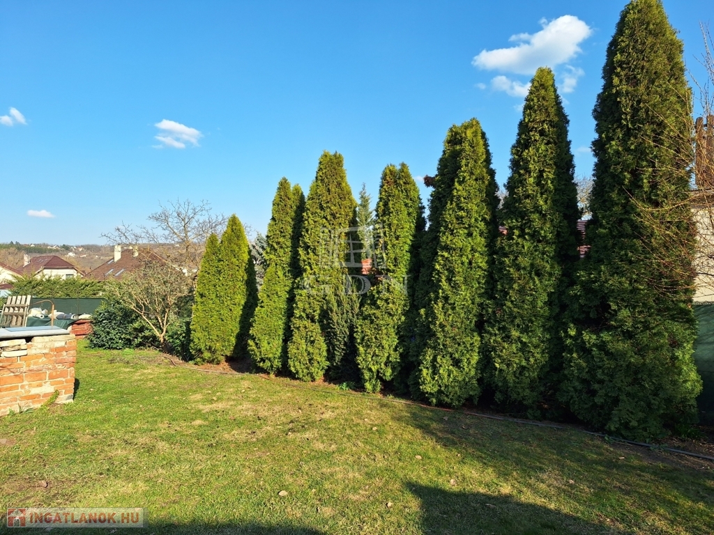 A 1079 m²-es, körbekerített telek gondozott, parkosított, amely ideális: