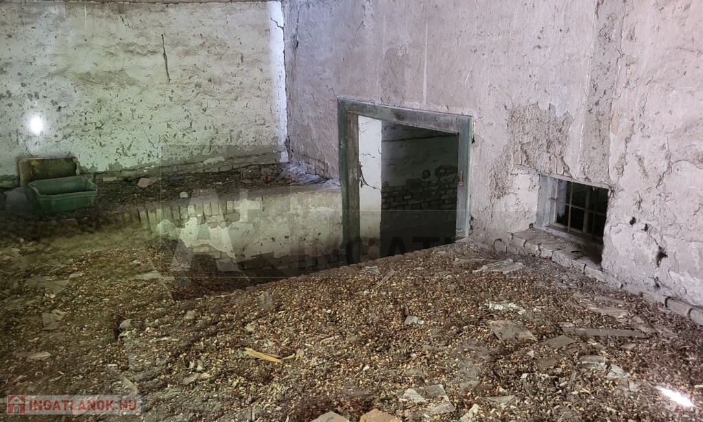 Kb 100m2-es épület, mely alatt egy homokos aljú, száraz pince van, ahova a zárt kocsibeállón keresztül lehet egy széles lépcsőn lejutni.