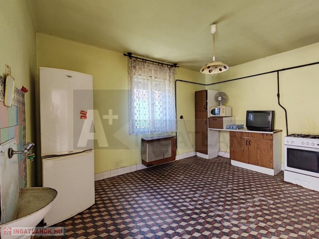 Eladásra kínálunk Kistelek központi részén egy felújítandó családi házat, amely egy 800 m²-es telken helyezkedik el, két különálló épülettel.