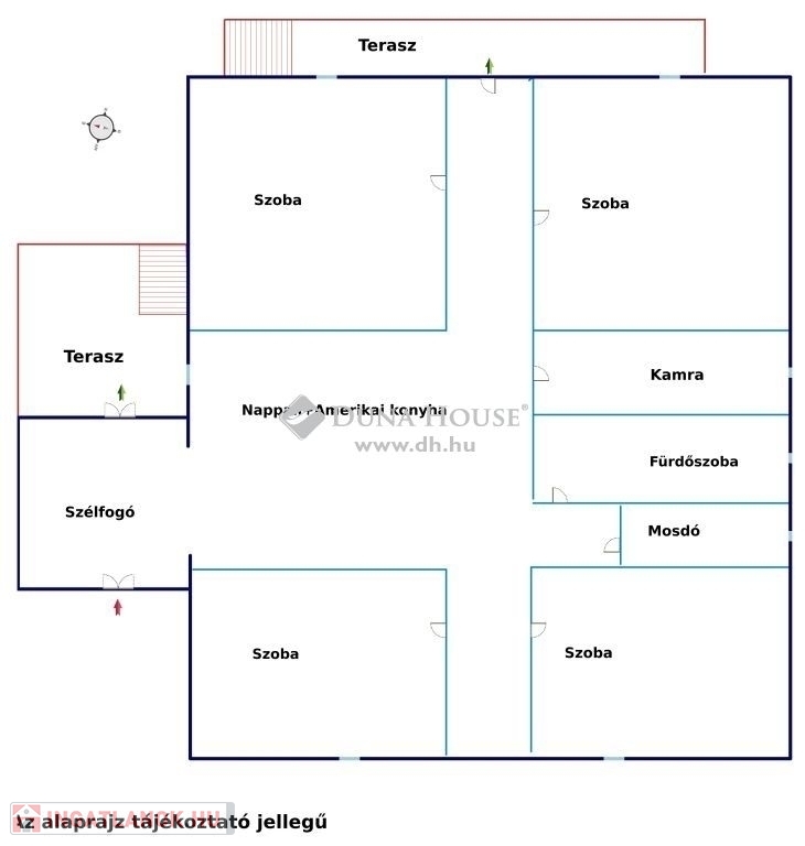 Belépve a bejárati ajtón barátságos, ugyanakkor hatalmas amerikai konyhás nappali fogadja az ide érkezőt, ahonnan fényes folyosón keresztül jutunk el a 4 db külön nyíló hálószobáig.