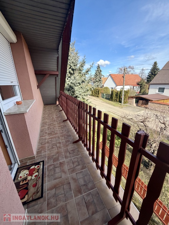 Az 1990-ben épült, szigetelt téglaház szintenként 75 m²-es kialakítással épült, a beépített tetőtérrel együtt összesen nettó 185 m² életteret kínál. A térszervezés kifejezetten jól működik nagyobb család esetén is.