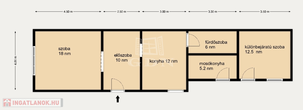 Különbejáratú szoba: 12.5 m²