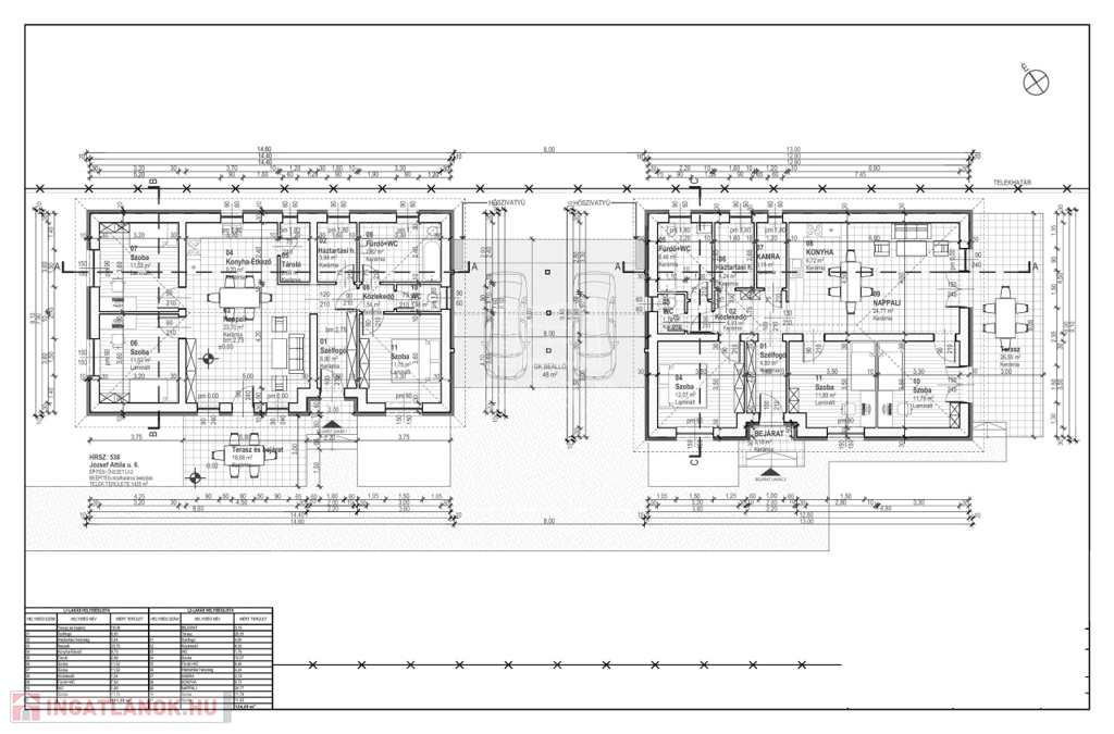 Kókán a József Attila utca 6. szám alatt, 1425 m²-es telken, nettó 93,2 m²-es és 94,55 m²-es három szoba + amerikai konyhás nappalival rendelkező, energiahatékony ikerházfelek eladók, számos referenciával rendelkező kivitelezőtől!
