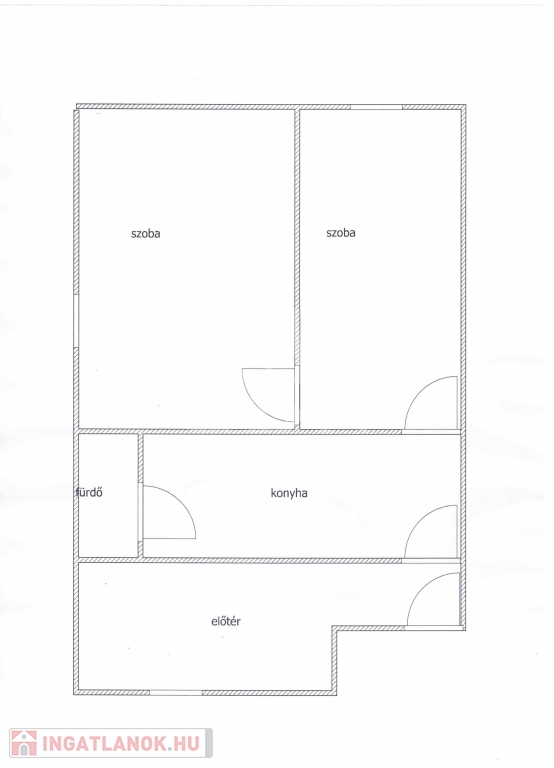 A lakás alapterülete 40 m2, 2 szoba, konyha, fürdő helyiségekből áll.