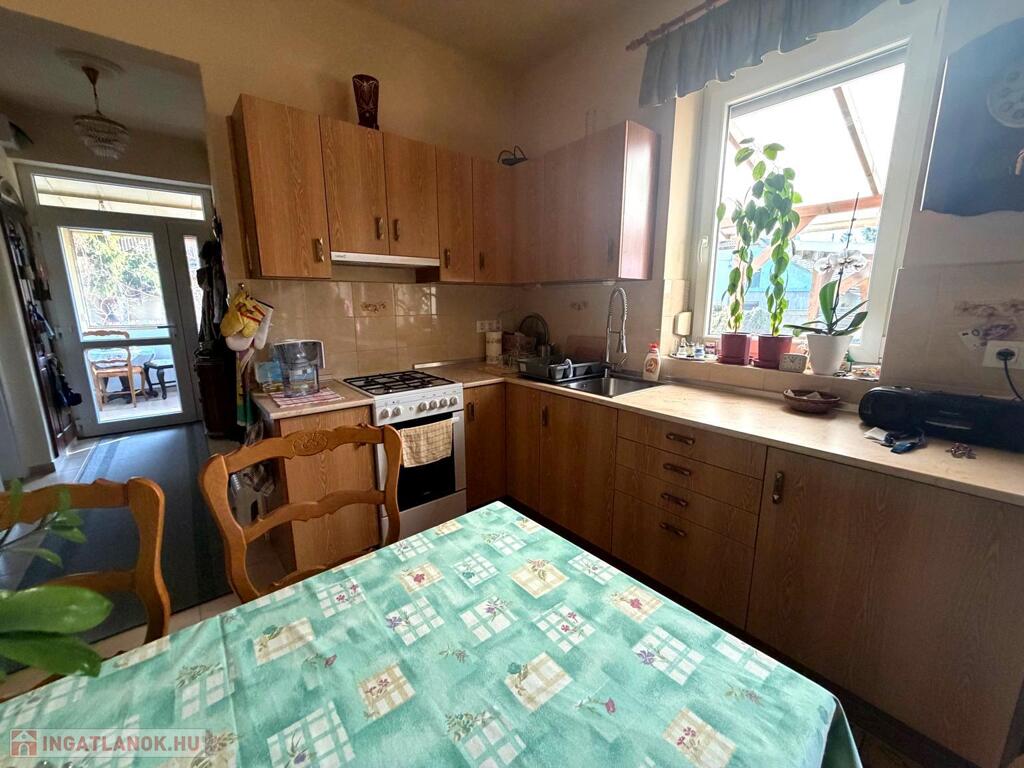A kb. 60 m²-es hasznos lakótér jól átgondolt elrendezésű: konyha-étkező, kamra, felújított fürdőszoba, előszoba, valamint két egybenyíló szoba, amely ideális nappali + háló kialakításra. Az ingatlanhoz egy kis terasz, és szuterén szint is tartozik, így a tárolási lehetőség is biztosított.
