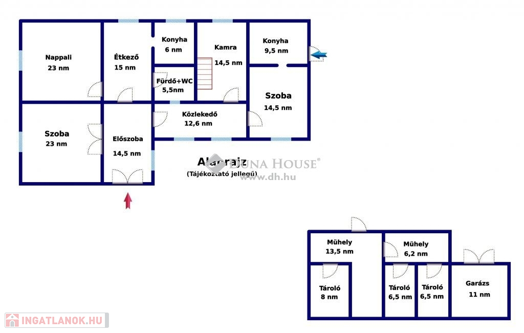 - előszoba, közlekedő (14,5 és 12,5 nm)