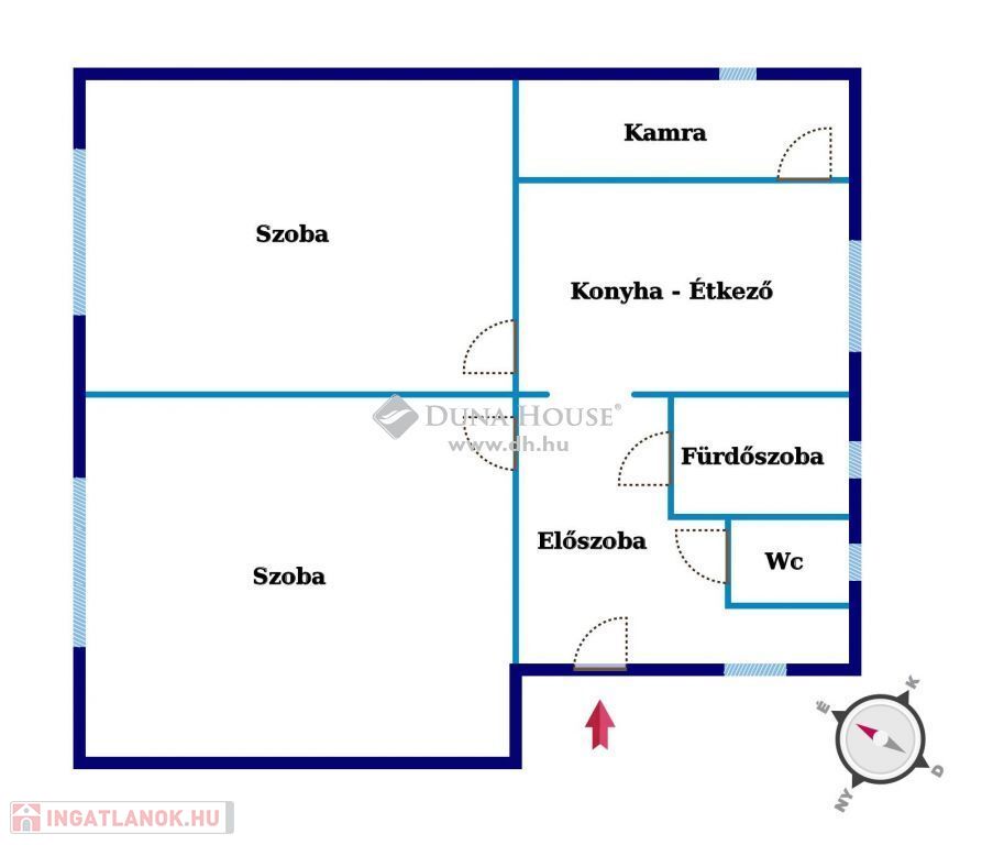 Az épület az 1960-as években épült téglából, a korra jellemző masszív, időtálló technológiával, anyagfelhasználással. Belső elrendezése kitűnő, két tágas, különnyíló szobája mellett egy étkezős konyha, egy méretes kamra, ablakos fürdőszoba, egy külön wc, és egy előszoba helyiségek kaptak helyet a házban. Könnyen átalakítható 3 szobássá, a nagyobbik szobából amerikai konyhás nappalit képezve, a mostani konyha és a kamra egybenyitott területe áll rendelkezésre új hálószobának.
