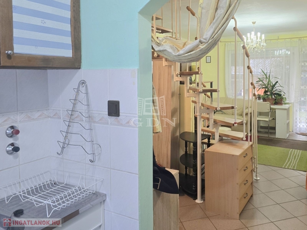 Az ingatlan 3 szobával rendelkezik, praktikus elrendezésének köszönhetően kényelmes életteret biztosít akár többgyermekes család számára is. A földszinti nagyszoba gyakorlatilag nappaliként funkcionál, az emeleti 2 szoba kiváló nyugalmat biztosít az éjszakai pihenésre. A lakás részben felújított, műszaki állapota kiváló: