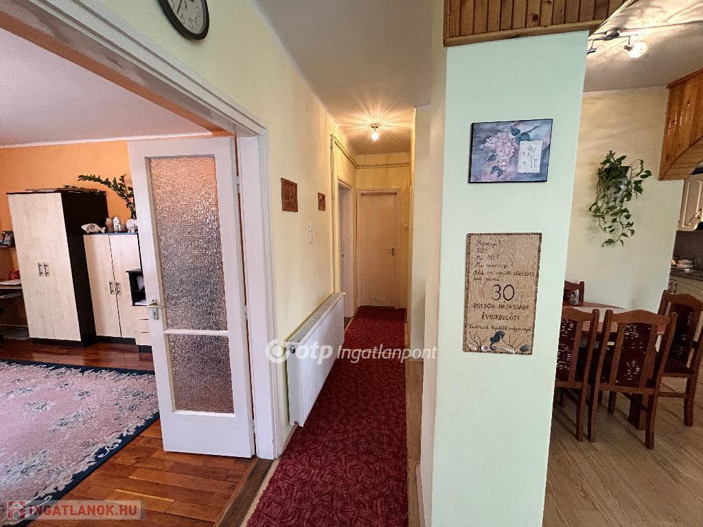 Balaton déli part: Kőröshegyen ELADÓ egy 142 nm-es két generációs családi ház. A 604 nm-es telken fekvő, családi ház, amely ideális választás lehet nagycsaládosoknak vagy akár befektetés céljából is. A kétszintes ingatlan két önálló, külön bejáratú lakórésszel rendelkezik. Az alsó, 91 nm-es lakrészben két hálószoba, tágas amerikai konyhás nappali étkezővel, kamra, zuhanyzós fürdőszoba és külön mellékhelyiség található. A nappaliban egy hangulatos cserépkályha gondoskodik a kellemes téli hangulatról, a hátsó udvar felé pedig egy világos télikert nyílik, amelyből egy külön szoba is elérhető tökéletes vendég- vagy dolgozószobának. Az alsó szint két bejárattal rendelkezik, egyik az utcafrontra, a másik az udvarra nyílik. A felső, 51 nm-es lakrész teljesen külön bejáratú, így akár kiadásra, akár nyaralóként is remekül hasznosítható. Két hálószoba, nappali, konyha és egy tágas fürdőszoba kapott benne helyet, a bejárat előtt pedig egy kis, kb. 2 nm-es teraszrész alkalmas a dohányzók részére. A ház alatt egy 55 nm-es, kisablakos szuterén található, amely három helyiségből áll, így tárolásra, konditeremnek vagy hobbiszobának is kiválóan alkalmas. A fűtésről gázkazán gondoskodik, a két lakrész pedig külön villany és vízórával ellátott. A villanyvezetékek, vízhálózat és padlóburkolatok 2016-ban teljeskörűen cserélve lettek, így a ház műszakilag is jó állapotban van. Az udvar rendezett és tágas, több autó parkolására alkalmas, valamint fedett kocsibeálló is rendelkezésre áll. A környéken buszmegálló, bevásárlóközpont, éttermek, gyógyszertár, játszótér, hétvégi piac, valamint templom is található. Csendes környezet, kiváló közlekedés és a Balaton közelsége teszi igazán vonzóvá ezt az ingatlant. A Balaton (Szántódi Szabad-strand, Balatonföldvári Szabad-strand) kb. 10 perc autóútra található az ingatlantól. Az M7 autópálya felhajtó pár perc autóúttal megközelíthető. A lokáció egyik hatalmas előnye, a Szántódi komp kikötő, amivel 8 perc alatt már az Északi part nyújtotta lehetőségeket is élvezhetjük. További információkért keressen elérhetőségeimen.