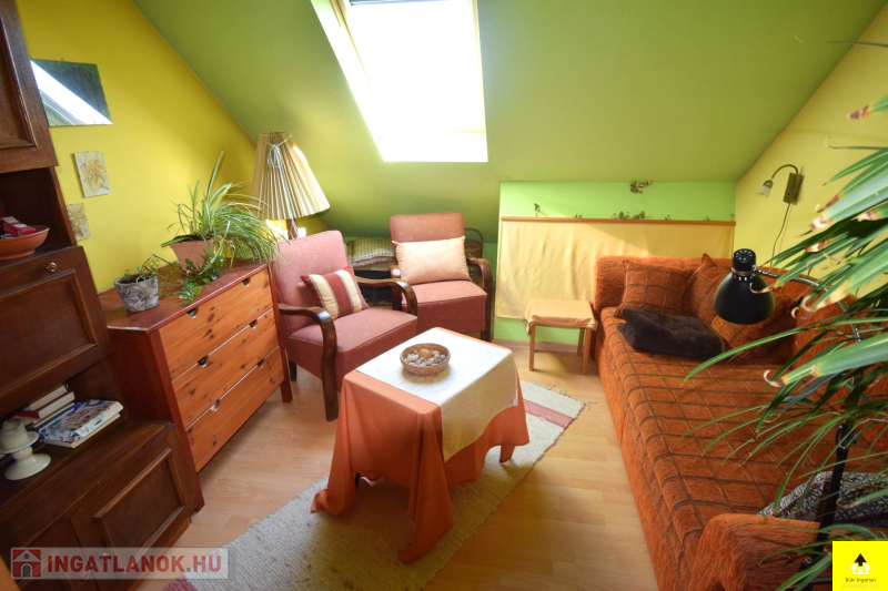 A harmadik lakás a tetőtérben található, melyet a kapuszínből szintén külön bejárattal lehet megközelíteni. Itt 2 kisebb szoba, egy konyha étkezővel, egy fürdőszoba és egy külön wc található.