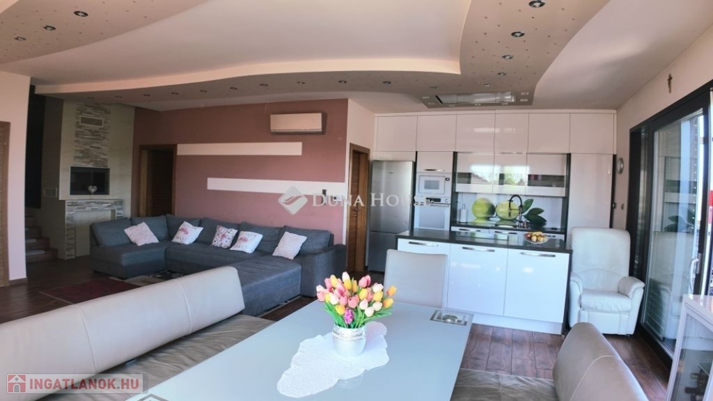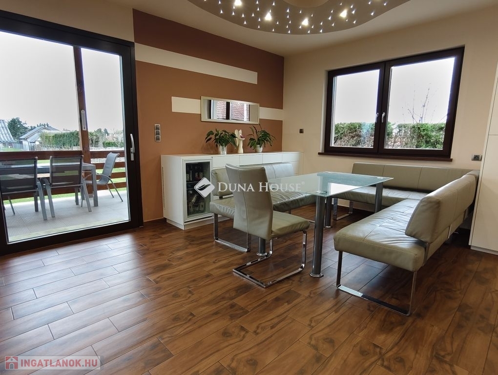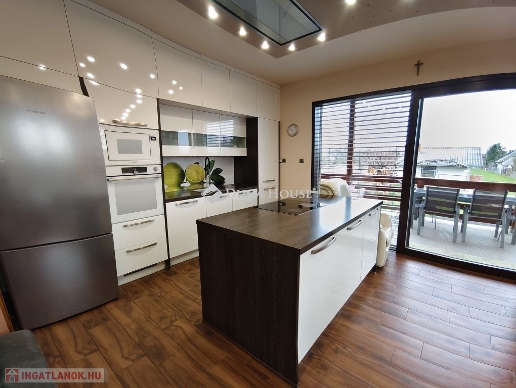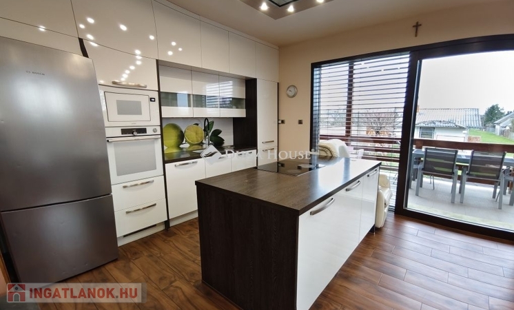 MODERN OTTHON KŐSZEG SZÍVÉBEN! EGY HÁZ KOMPROMISSZUMOK NÉLKÜL!Kőszeg családi házas övezetében, pár perc sétára a belvárostól, eladó egy 2014-ben épült, prémium minőségű, 138 m²-es könnyűszerkezetes családi ház, amely minden szempontból megfelel a mai kor elvárásainak.Ez az otthon nemcsak gyönyörű, de szakmailag is kifogástalan:Jó alapanyagokból, nagy odafigyeléssel lett megépítve.Szerkezete favázas, a következő rétegrenddel: Külső hőszigetelés 14 cm CK-Lap Gerendaváz 15 cm szigeteléssel Párazás+OSB-lap gipszkartonMűszaki felszereltsége, nagyon okosan lett kigondolva, így a ház közművekre fordított költsége szinte nulla.Ráadásul három féle fűtés mód közül is választhatunk. A fűtést és a meleg víz szolgáltatást hőszivattyú biztosítja Továbbá kiépítésre került egy faelgázosító kazán 2 nagy puffer tárolóval Egy elektromos kazán is működtethető Hűtő fűtő split-klima a nappaliban A 12 kWp napelemes rendszer található, mely évi 15000-15500 kWh áramot termel. Elszámolása 2028.04-ig szaldós, mely átruházható. H-Tarifás mérő A hab a tortán egy nyertes Energiatároló Pályázat, ami szintén átruházható az új tulajdonosnak.A kényelmet és biztonságot is számos technikai felszereltség biztosítja: Elektromos alumínium redőny, ravsztor (védelem áram és túlfeszültség ellen) rendszer Vízlágyító berendezés Elektromos vezérléssel ellátott motoros alumínium úszókapu és alumínium kisajtó kamerás kaputelefonnal Hörmann harmónika garázskapu vezet a pincerészbe Üvegszálas szélessávú internet csatlakozás Tető csapadékelvezetése egy óriási szikkasztóval A hátsó melléképület vezetékes internettel, erősárammal, vízzel és szennyvíz elvezetéssel ellátott4 külön nyíló hálószoba ideális családnak vagy akár home office-hozTágas, egybenyitott nappali + étkező + konyha, ahol valóban együtt él a családKapcsolat a természettel: innen nyílik a közel 20 m²-es keleti terasz, ahol a napfelkeltében kortyolhatod a reggeli kávédTelek és extra lehetőségek:2070 m²-es, gondozott telek tér, szabadság, nyugalomKülön melléképület, nyárilak funkcióval, víz- és WC lehetőséggelKényelem és praktikum:Pincegarázs autók elhelyezésére, közvetlen feljárással a házbaFedett felszíni beálló 2 autó részérePince szinten kialakított wellness tér lehetősége (tusoló előkészítve) a saját kis énidős zónával.Miért különleges?Ez nem csak egy ház.Ez egy életérzés: reggeli napfény, nyugodt környezet, mégis minden karnyújtásnyira.Egy hely, ahol a modern kényelem és a természet közelsége tökéletes egyensúlyban van.