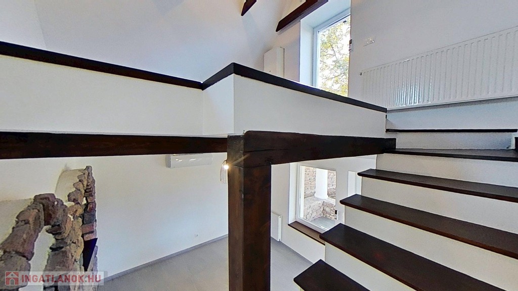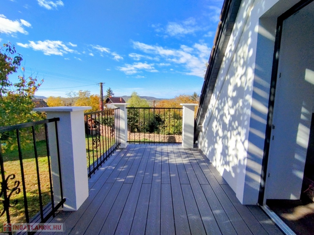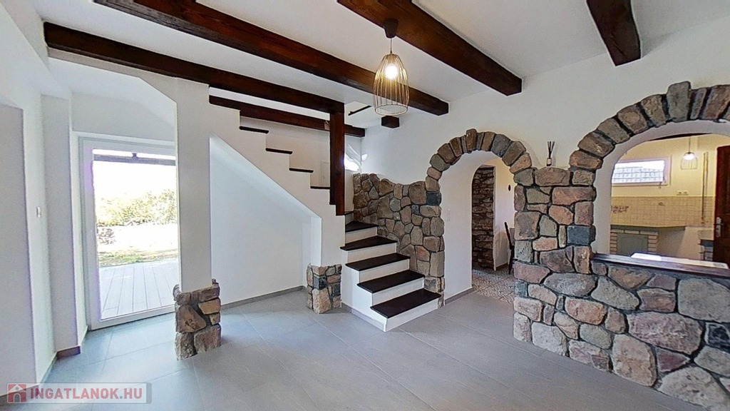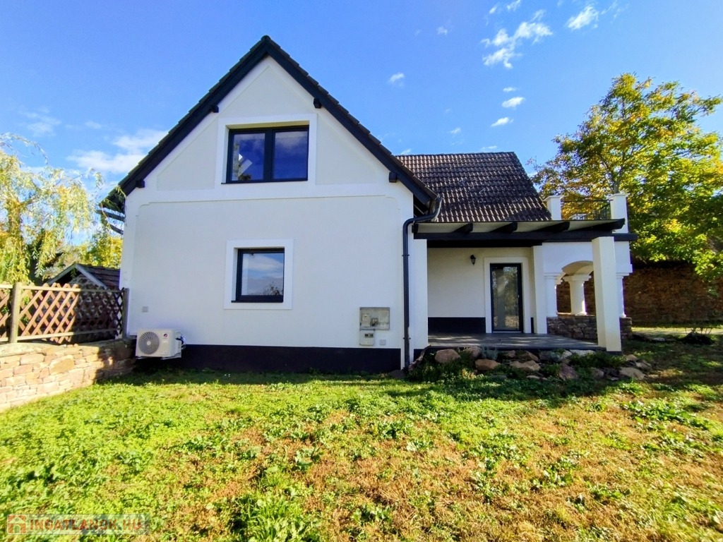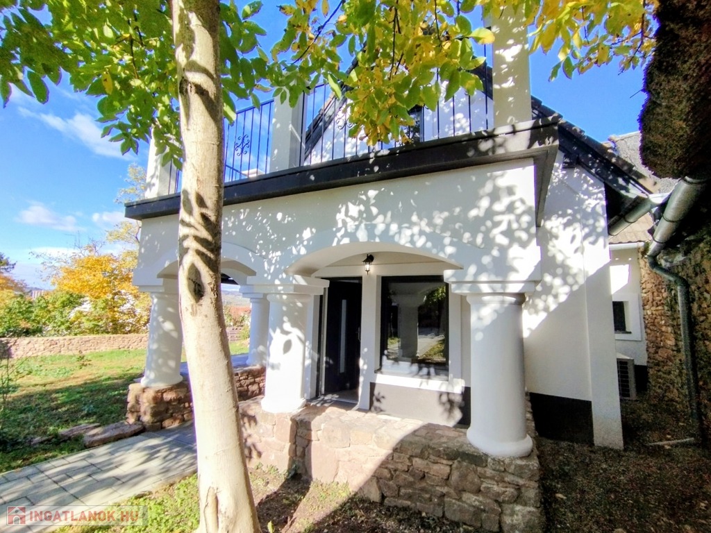 Eladó egyedi megjelenésű, földszint plusz tetőtér-beépítéses, 100 m2 belső hasznos területű, 3 szobás, duplakomfortos, felújított családi ház a Balaton északi partján, Kővágóörsön, elvehetetlen panorámával a Káli-medencére, a Kis-Hegyestűre és a kővágóörsi kőtengerre.