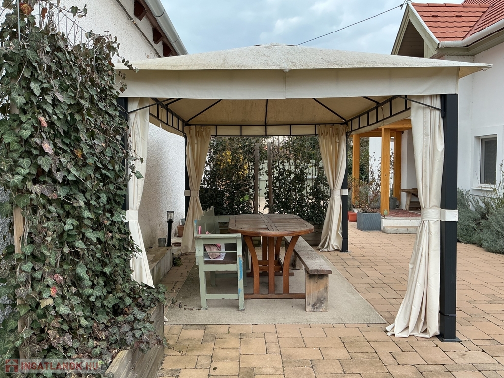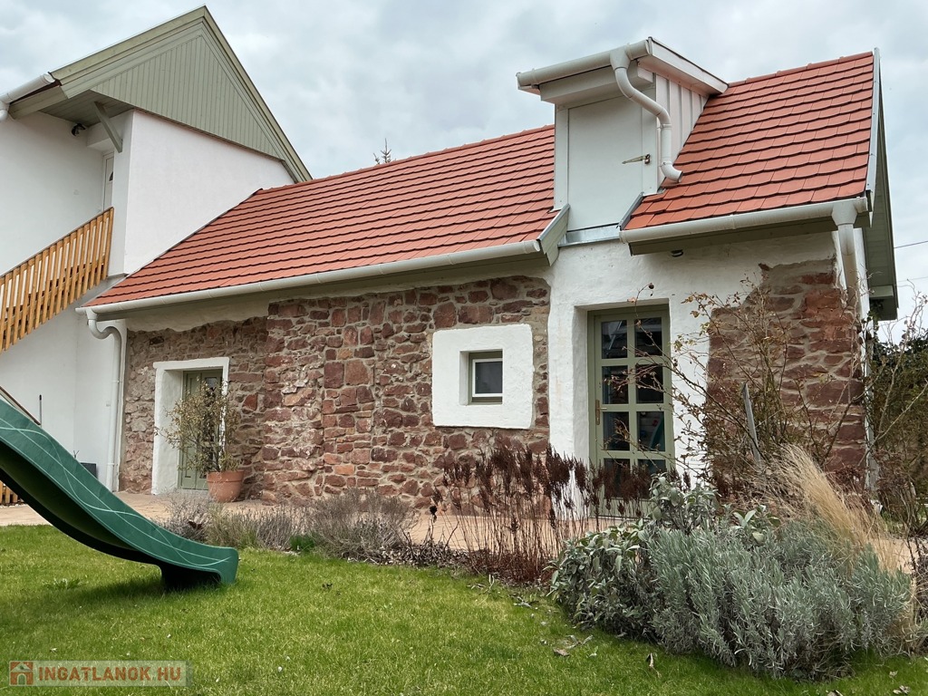 Az oldalépület 32 m2, és egy igazi kúriózum, ami vöröskőből épült, közművekkel ellátott, 2025-ben került korszerűsítésre. A felújítás során új, három rétegű fa nyílászárók kerültek beépítésre, mellékhelyiséggel ellátott, a fűtéséről pedig egy Gree klíma gondoskodik. Alkalmas akár vendégháznak, nyári konyhának vagy vállalkozás kialakítására.
