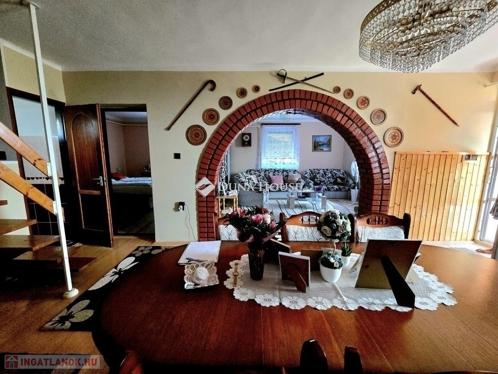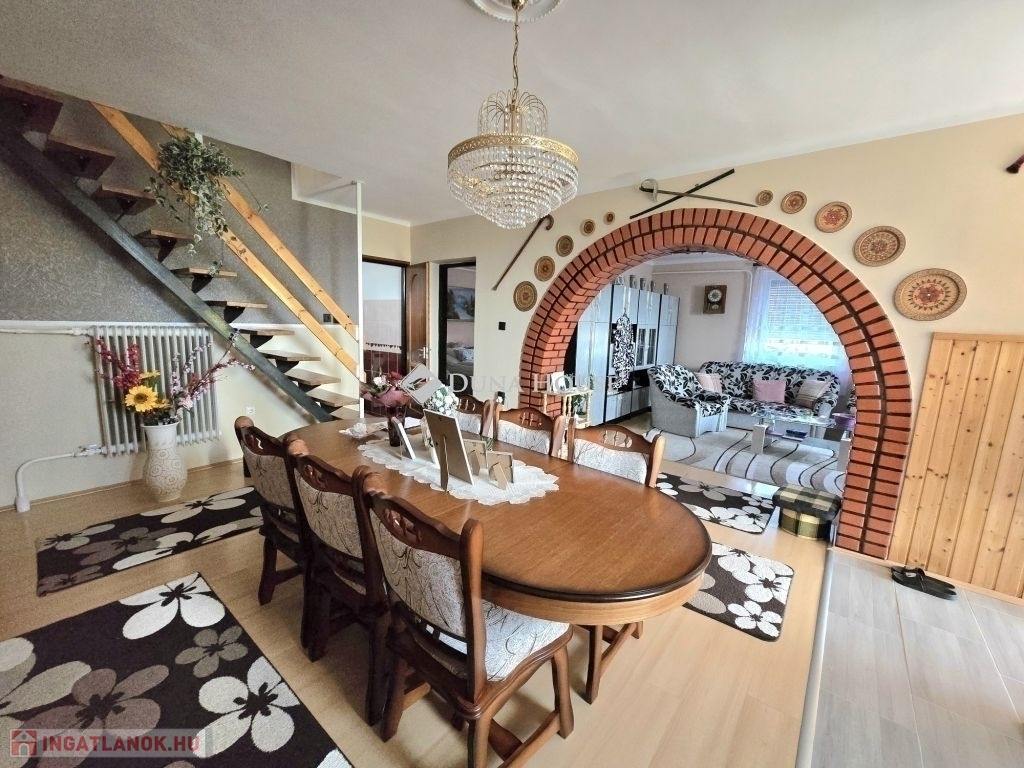 Kővágószőlősön eladó egy nagyon szép állapotú, jelenleg 5 háló+ nappali elosztású, tetőtér beépítéses családi ház nyári konyhával.Az épület 1987-ben épült, kb. 10 évvel ezelőtt külső szigetelést és színezést kapott, a tavalyi év során (2024.) belső felújítás zajlott, nyílászárócserével, aljzatburkolatok cseréjével, az emeleti fürdő újragondolásával.Az ingatlan fűtésére három lehetőség adott: - vegyes tüzelésű kazán- gáz kondenzációs kazán(Saunier Duval)- klímaAz ingatlanhoz tartozó telek 1462 nm, de ezen felül a vételár vonatkozik a házat körülvevő több kisebb telekre, mely összesen közel 1400nm.A területen helyet kapott egy könnyűszerkezetes építésű fűrészüzem, fa megmunkáló gépekkel, melyek szintén maradnak az ingatlan tartozékaként.A nyári konyha a tulajdonosok kedvelt tartózkodási helye a nyári időszakban, mellette egy közel 30 nm-es garázs kapott helyet, ez alatt jó méretű pince van.A telek majdnem teljesen sík, jól kihasználható.A nyári konyha mellett találunk egy 3 helyiségből álló tároló épületet, mely szükség esetén lakótérré alakíthattó.Az ingatlanon kamerarendszer működik, a ház környezete szépen parkosított.További kérdések esetén kérem keressen telefonon!