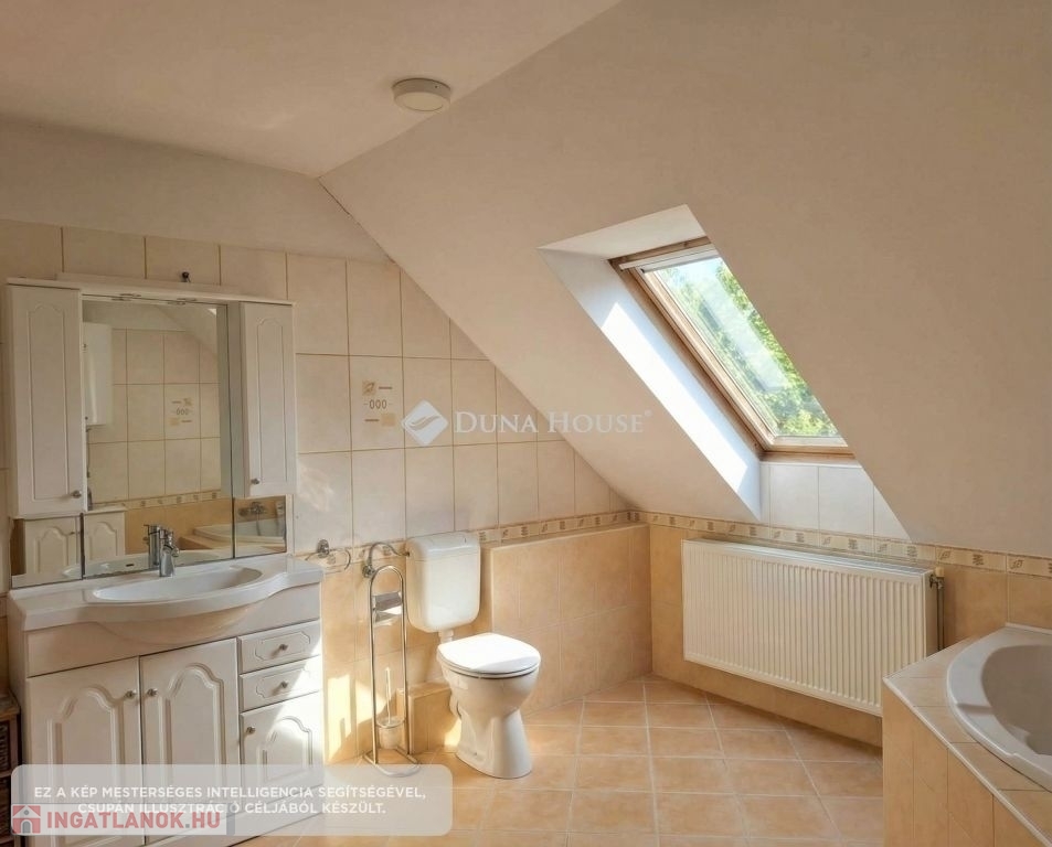 - felső szinten: két hálószoba nappali fürdő wc-vel- gáz-cirkó fűtéssel,