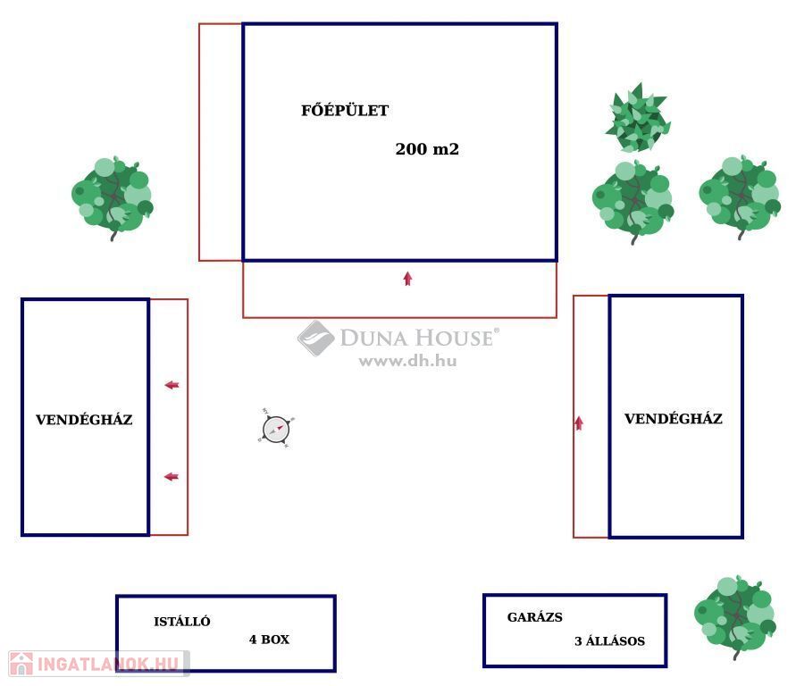 A teljesen körbekerített erdővel ölelt területen az ingatlanok 2020-ban gondosan megtervezve és igényesen kialakítva lettek megépítve, illetve újjáépítve. Az így elkészült épületegyüttes alkalmas vendég fogadásra és lovak tartására is.