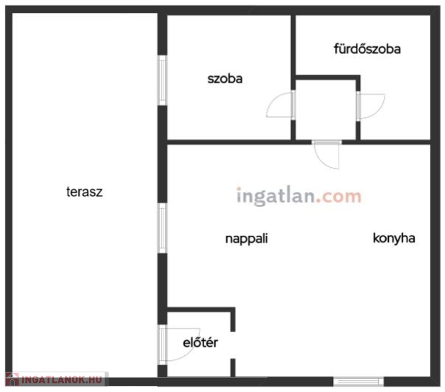 Az épület felújított felső szintjén előszoba, amerikai konyhás nappali, hálószoba, fürdőszoba található.