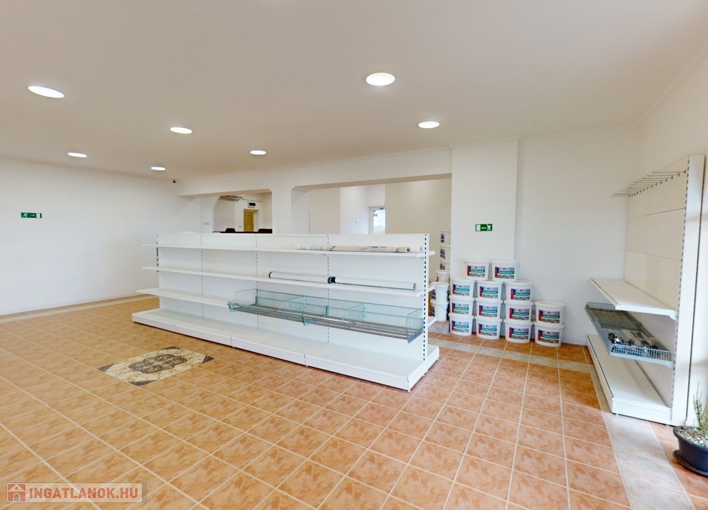 A földszinten találhatunk egy hatalmas nagy teret. Gyönyörű szép burkolattal, fallal, spotlámpákkal. Gyönyörű kilátással a környezetre. Képzeljük el, hogy akár egy étteremként, akár egy bemutató teremként – attól függően, hogy mire kívánjuk használni az ingatlant – kiválóan funkcionálhat a mellette levő külön teremmel, recepcióval, és a hozzá tartozó tárolókkal együtt.