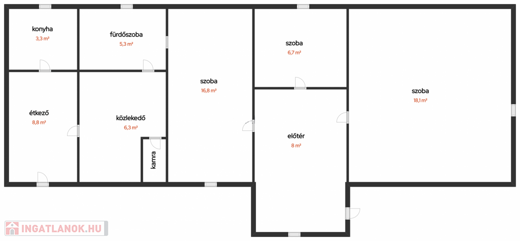 Az első rész egy tágas előtérből nyílik, és két és fél szobát foglal magában — ideális hálóknak, gyerekszobának, dolgozónak vagy vendégszobának.
