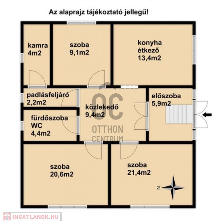 - 90,4m2 lakótér helyiségei: 3 szoba, tároló, közlekedő, konyha-étkező, kamra, fürdőszoba wc-vel