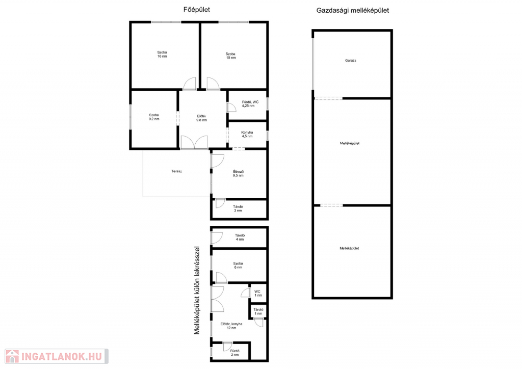 Emellett az ingatlanhoz tartozik egy 70 m²-nél nagyobb gazdasági melléképület, amelyben garázs és több tárolóhelyiség is helyet kapott.