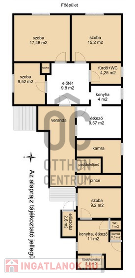 - szoba, konyha-étkező, fürdőszoba, külön WC, kis kamra