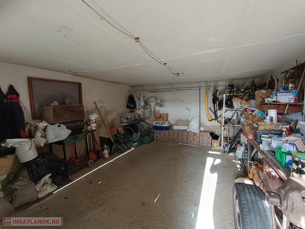 A ház folytatásában garázsok, melléképület, műhely, tároló és pince is rendelkezésre áll. A pince fölött egy 6 m2-es erkélyes helyiséggel.
