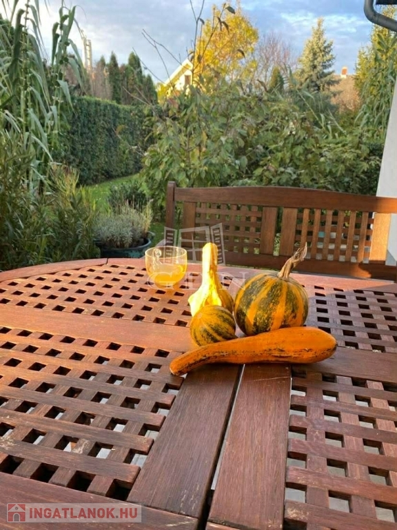 12 m2-es fedett teraszról csodálhatjuk a gondozott udvart, melyen kerti tároló, grillező és garázs található.