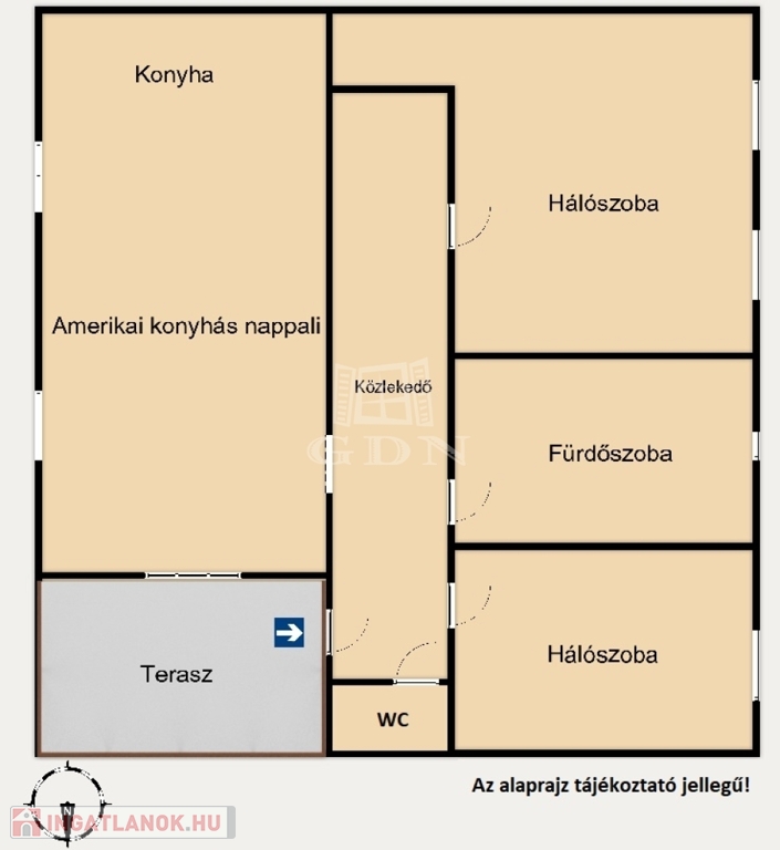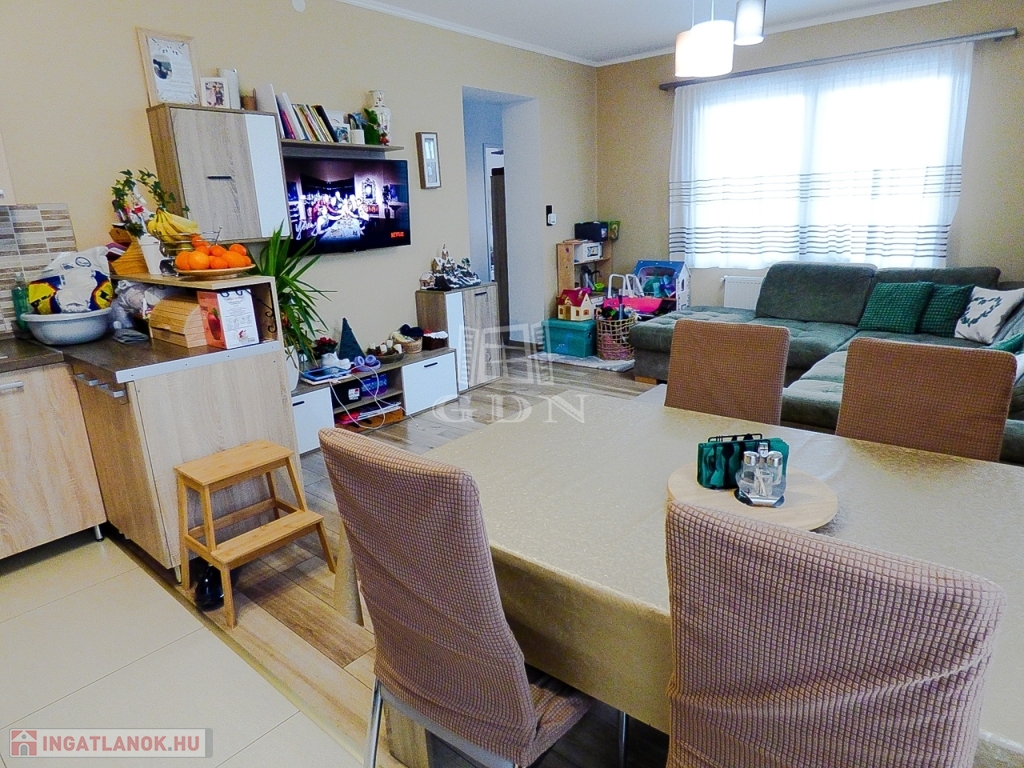 Az ingatlan 1986-ban épült, nettó 80 nm-es, 3 szobás, amerikai konyhás - étkezős nappalival (+ 2 hálószoba), közlekedővel, fürdőszobával és külön wc-vel, fedett terasszal (+10 nm) nyerte el jelenlegi állapotát.