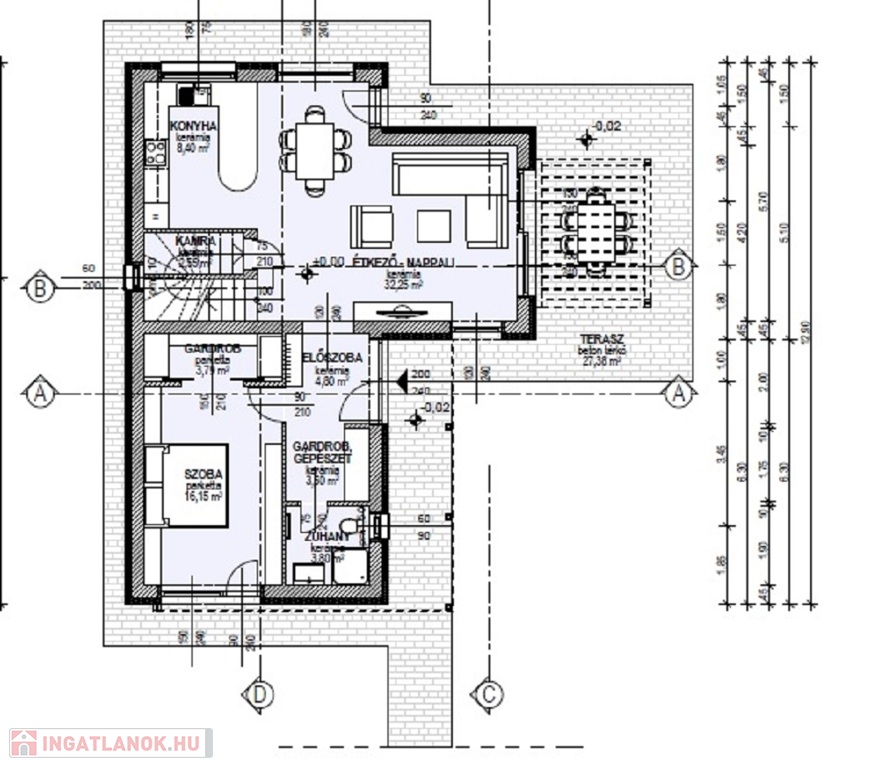 -Hőszigetelése:- Homlokzati falakon 15 cm Austrotherm AT-H 80, - Lábazaton 15 cm Austrotherm