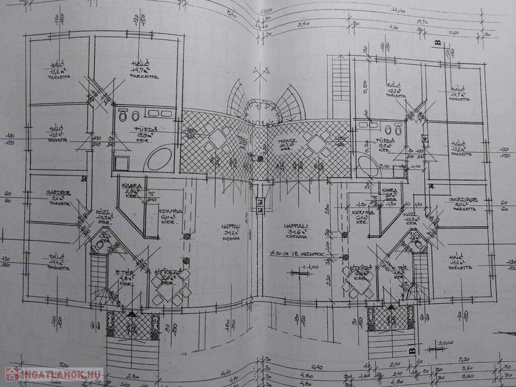 Mindkét lakás nettó 135.3 nm + szuterén 112.6 nm + fedett terasz 40.68 nm.