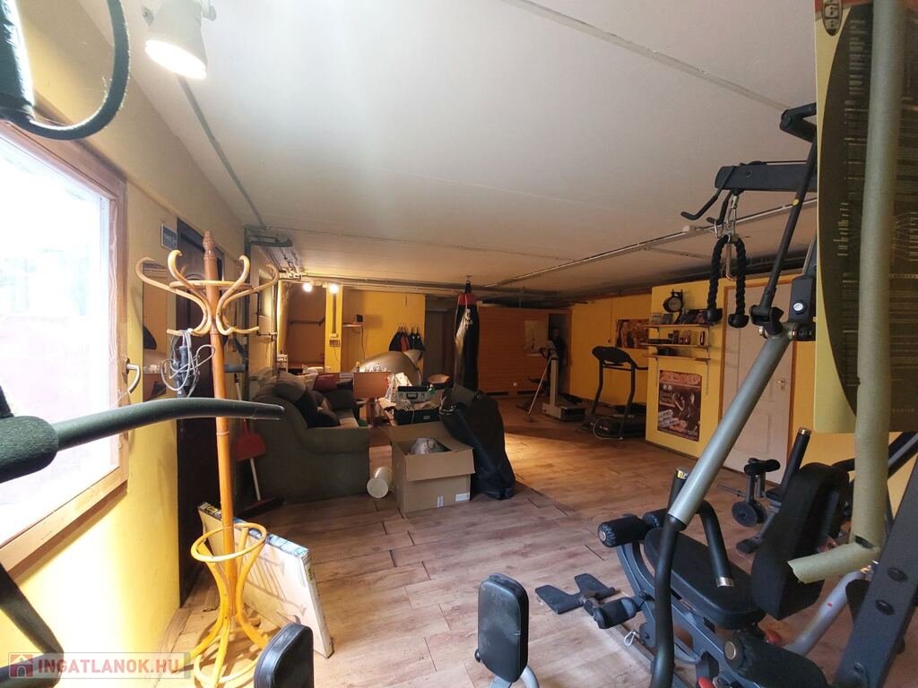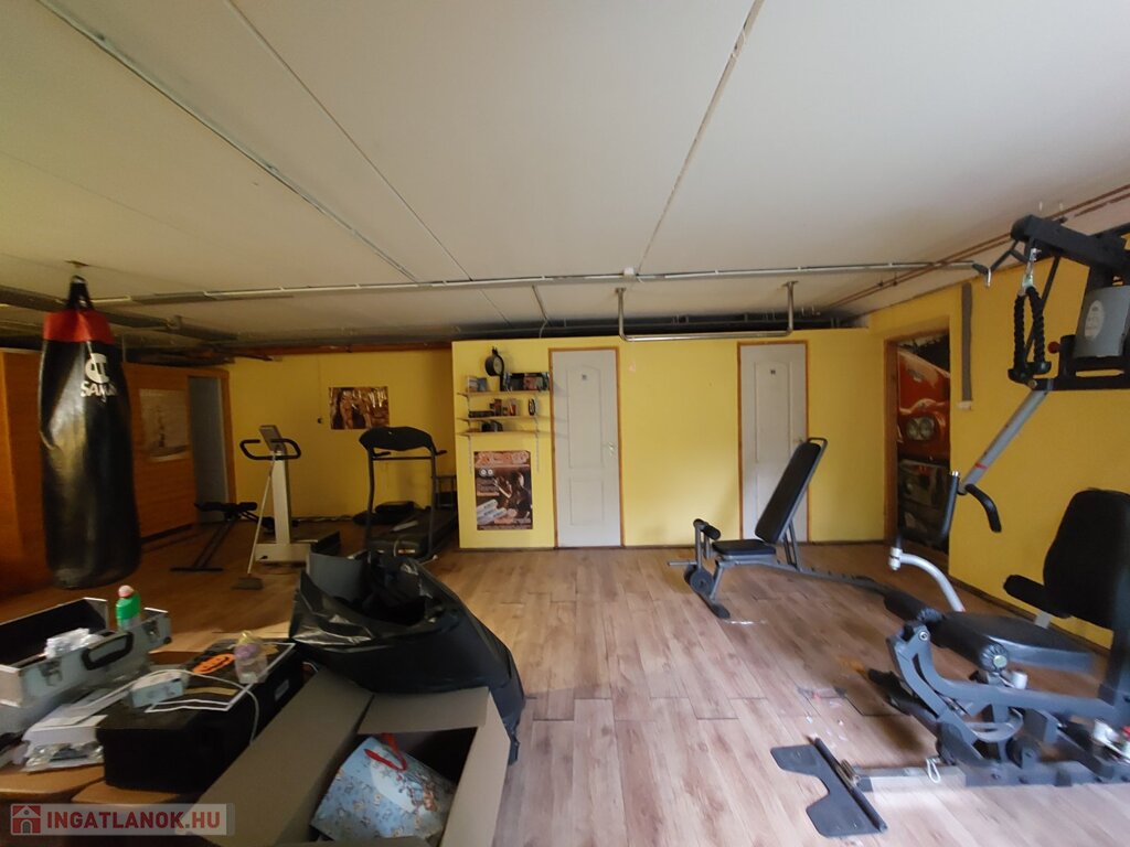 A bal oldali ház alatt lévő szuterénben konditerem lett kialakítva, képesítve és a hozzá tartozó zuhanyzó, Wc., egy álló szolárium valamint előkészített kutyakozmetika helység.