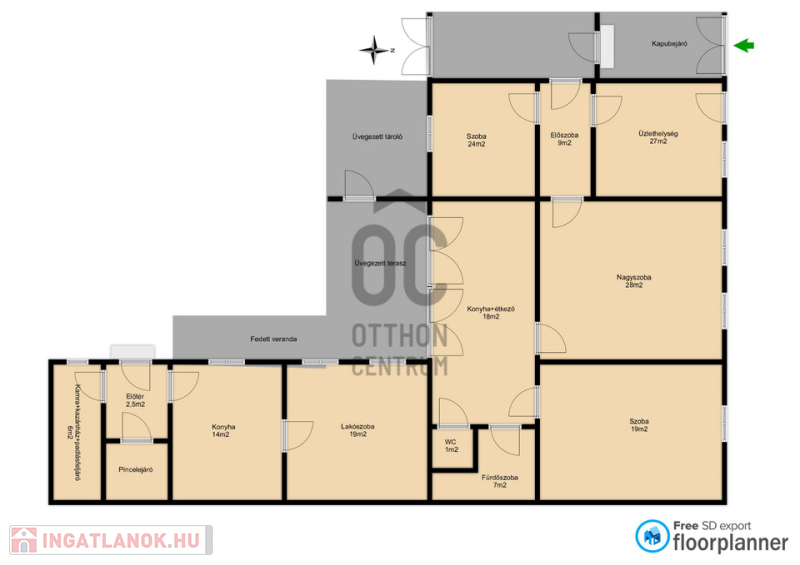 Szobák: Az ingatlan 5 nagy szobával rendelkezik valamint egy utcára nyíló üzlethelységgel, melyek különböző célokra – lakás, iroda vagy bemutató terem – is hasznosíthatók. A két külön bejáratnak köszönhetően az ingatlan többféle felhasználásra is alkalmas, például irodának vagy akár két különálló lakrész kialakítására is. A ház cserépkályhával és gázcirkó fűtéssel is felszerelt, így a fűtés gazdaságosan és rugalmasan megoldható. Az ingatlanhoz tartozik egy fedett terasz, amely kiválóan alkalmas pihenésre, kerti bútorok elhelyezésére, vagy akár kültéri étkezésekre. A 638m2-es udvarban található kút kiváló lehetőséget nyújt a kert gondozásához vagy más vízigényes tevékenységekhez.