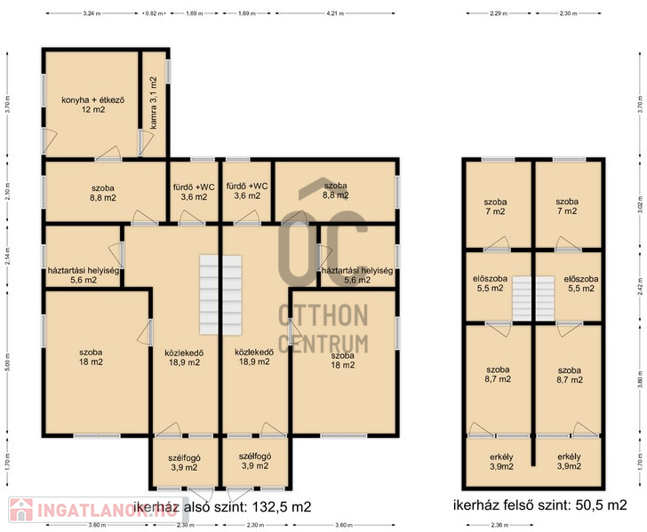 A nagyobb bal oldali rész állapota átlagos, a jobb oldali felújítandó, de az épület kiválóan alkalmas arra, hogy az új tulajdonos saját ízlése szerint alakítsa ki.