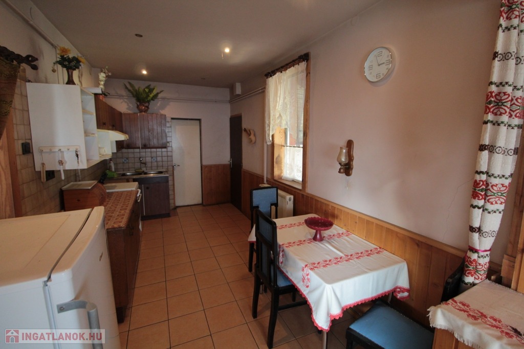 A 680 m²-es telken egy 1970-es években épült kétszintes ház található, melynek hasznos területe 90 m². Vastag, stabil falai tömör, nagyméretű téglából dupla sorba rakva épültek, tégla alapokra. A tetőszerkezete jó állapotú, a lécezés és a héjazat cseréje 15 éve megtörtént.