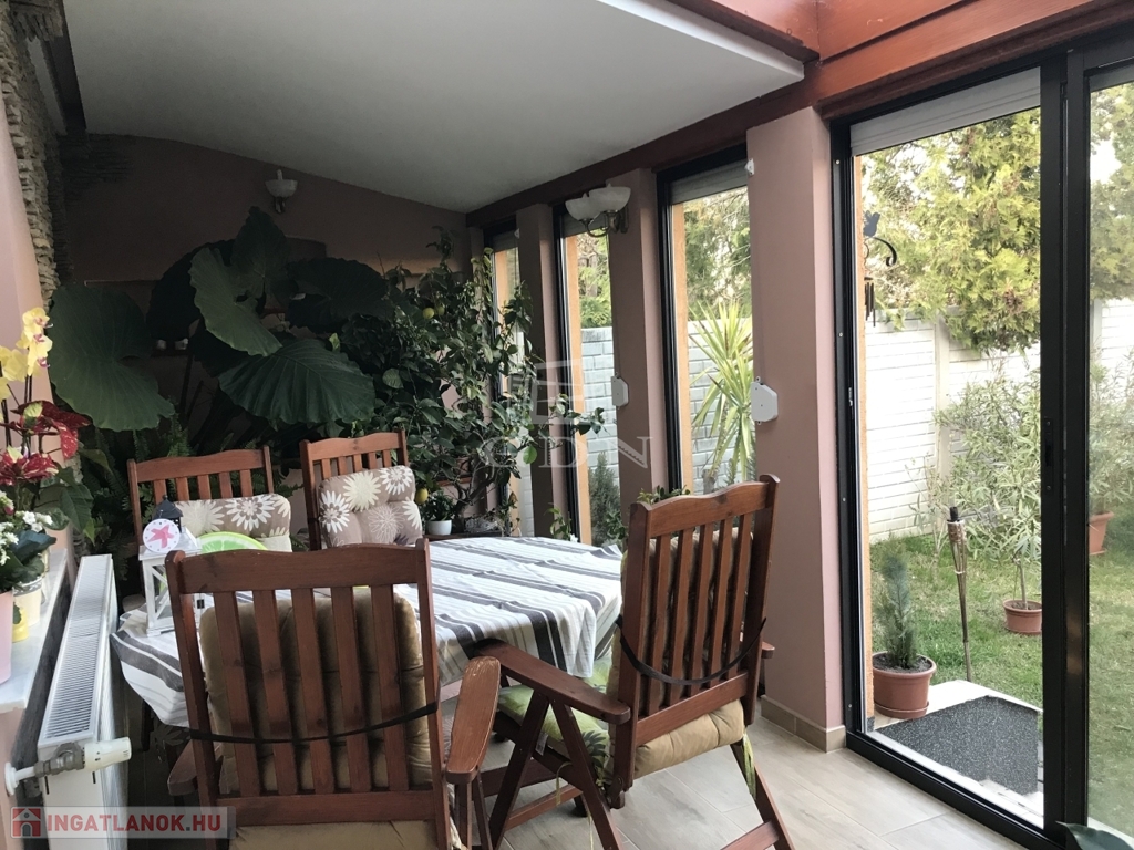 A kertvárosias környezetben található, 260 négyzetméteres ápolt kert garantálja a magánélet és nyugalom szigetét.