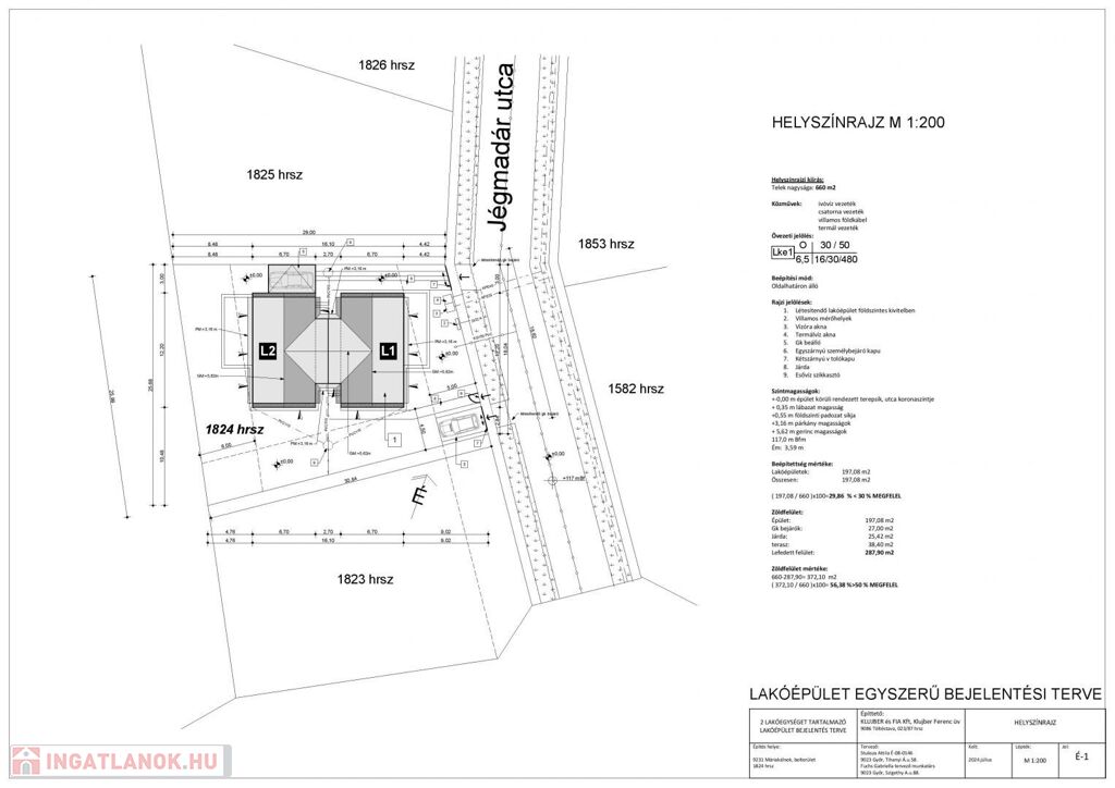 Az ikerházak egy 660 m2-es telken épültek fel. Ebből a 2. lakáshoz kb. 382 m2 saját terület tartozik.